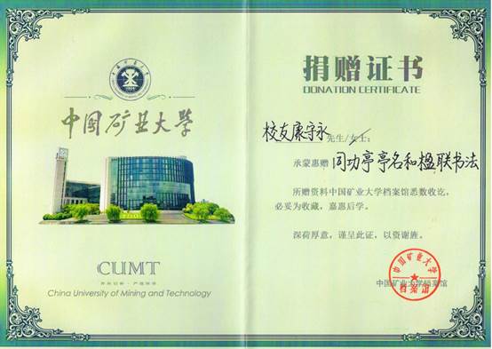 冯海亮向档案馆捐赠同功亭记书法-中国矿业大学档案馆
